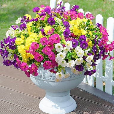 24 bouquets de fleurs artificielles d'extérieur, plantes artificielles en plastique résistant aux UV, en vrac, pour jardinière suspendue, porche, fenêtre, maison, mariage, décoration automne-été