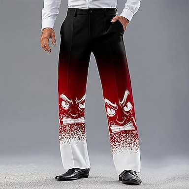 Noël Homme Drôle Visage imprimé Pantalons Dress Pants works Pantalons de Costume Taille Moyenne Drôle Fête Vêtements de rue Pantalon habillé coupe décontractée à devant plat avec poches latérales