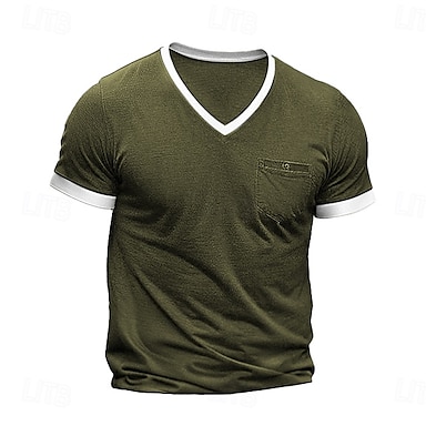 Homme T-shirt Chemise à manches courtes Manche Courte Col en V Printemps & Automne Bloc de Couleur Mode Designer Sexy Vacances Rue Sortir Chameau Bleu marine Noir T-shirt haut de gamme pour homme