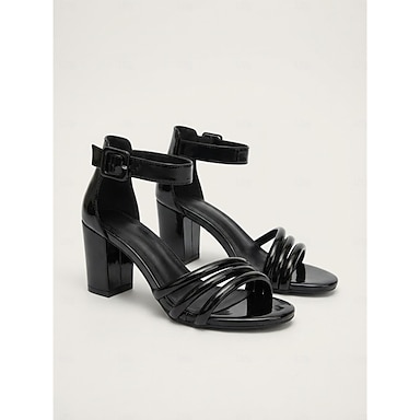 Sandales à talons en cuir verni pour femmes avec brides à la cheville et brides en strass – chaussures habillées élégantes pour les soirées et les fêtes