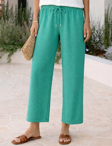 Femmes Gauffré Jambe large Chinos Vacances Mode Streetwear Longueur complète Taille haute Uni Ceinture Élastique Confortable Confort Doux Élastique Extérieur Rue Tenue quotidienne Bleu marine Vert
