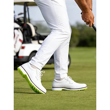 Chaussures de golf blanches pour hommes, tige en similicuir respirant, semelle adhérente et stable, style sport-chic, parfaites pour les golfeurs et les activités de plein air.