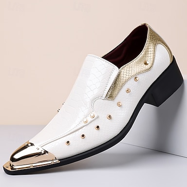Chaussures habillées métallisées dorées à motif crocodile pour homme – chaussures de soirée brillantes pour les fêtes, les mariages et les soirées en boîte de nuit