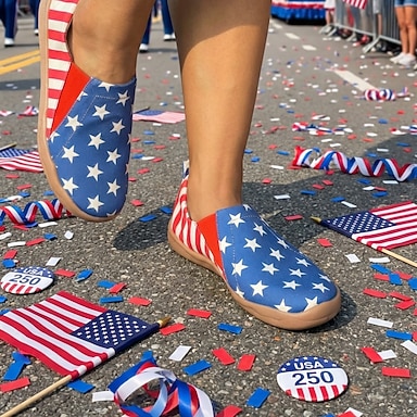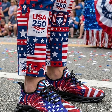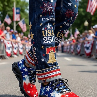 Baskets patriotiques pour hommes, commémorant le 250e anniversaire – motif drapeau américain rouge, blanc et bleu, chaussures confortables à enfiler pour célébrer la fête de l'indépendance et les événements nationaux.