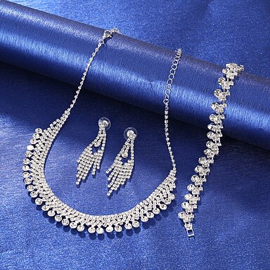 un parure de bijoux de mariée 3 Diamant Imitation 1 Collier 1 Bracelet Boucles d'oreilles Femmes ancien Mode Personnalisé Adorable Classique Amour Précieux Parure de Bijoux Pour Mariage Travail Cadeau