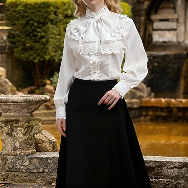 Rétro Vintage Rococo Médiéval Blouse / Chemise Manche Volants Princesse Vampire Reine Dentelle Nœud Couleur Unie Déguisement Femmes Pirate Royal Steampunk Mascarade Décontracté Quotidien Adulte