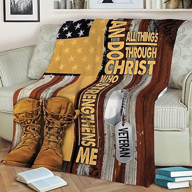 Jour de l'Indépendance Couverture Couvertures polaires Couverture pour canapé Cadeau drapeau américain Vétéran Classique 3D Canapé Lit Couverture décorative Couverture chaude Décoration d'intérieur