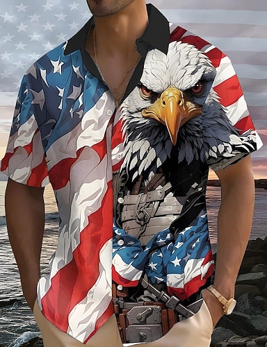 Jour de l'Indépendance Américaine Homme 4 juillet, 250e anniversaire des États-Unis Drapeau Américain Drapeau national Chemise Boutonnée Manche Courte Hawaïen Occasionnel Resort Occasionnel Extérieur