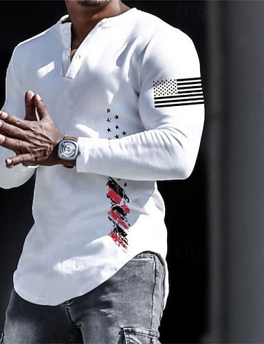 Blouse patriote femme pour le Jour de l'Indépendance en lin léger et respirant tops d'été graphiques drapeau vintage décontractés manches 3/4 col rond tops réguliers impressions quotidiennes blanc