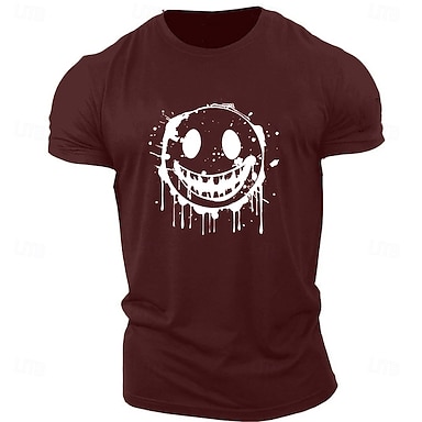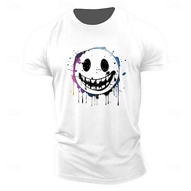 T-shirt graphique à manches courtes pour homme avec visage déformé et design éclaboussures de peinture