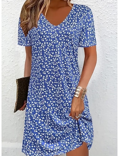 Femmes Mini Robe Robe d'Été Robe T-Shirt Robe trapèze Vacances Occasionnel Boho Plage Sortir Coupe régulière Fleuri Graphique Manche Courte Col en V Bleu Rose Claire Rouge Vert Été Printemps