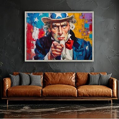 Peinture à l'huile faite main sur toile, décoration murale moderne, style graffiti pop art, représentant l'Oncle Sam. Toile tendue sur châssis ou roulée sans cadre.