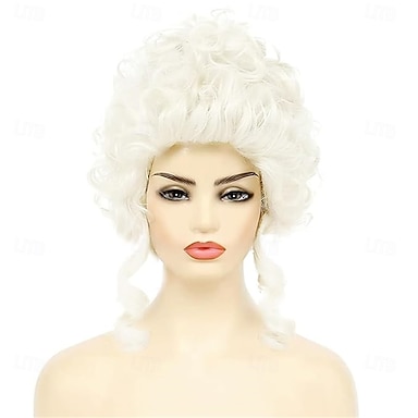 Cap de cheveux perruque baroque blanche bouclée boucles en anneau perruque du XVIIIe siècle chignon synthétique perruques de juge avocat blanche pour femmes cosplay costume fête masquée de Noël