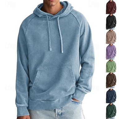 Homme Sweat à capuche Bleu Noir Jaune Rouge Violet À capuche Uni Poche kangourou Sport & Loisir Occasionnel Quotidien ancien Streetwear Vêtements de sport Printemps & Automne Vêtement Tenue Pulls