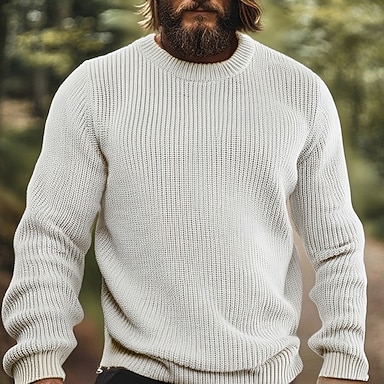Homme Pull Torsadé Tricoter Hauts Réguliers Tricoté Coupe ajustée Uni Col ras du cou Noël Tricots Noël Occasionnel Vêtement Tenue Automne Blanche M L XL