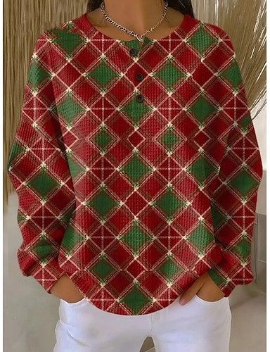 Femmes Sweatshirt Pull Boutons Imprimé Cœur Graphique ancien Occasionnel manche longue Col ras du cou Hauts Réguliers Occasionnel Rue Tenue Quotidienne Bleu Rose Claire Rouge Vert Printemps Automne