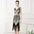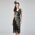 Années Folles Années 1920 Mi-long Robe Charleston Robe Robe de cocktail Sans manches Gatsby le Magnifique Invité au mariage Paillettes Patchwork Col en V Déguisement Femmes Mariage Soirée Mascarade