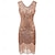 Rétro Vintage Années Folles Années 1920 Mi-long Robe Charleston Robe de cocktail Sans manches Gatsby le Magnifique Fille Flapper Paillettes Frange Col en V Déguisement Femmes Noël Carnaval Mariage