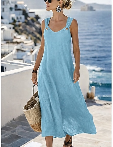 Femmes Robe maxi Faux coton lin Robe fourreau Robe d'Été Robe Décontractée Basique Moderne Quotidien Plage Vacances Coupe Ample Uni Sans manches Col en V Bleu Blanche Marron Vert Été Printemps