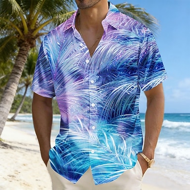 Homme Dégradé de Couleur Feuille de palmier Plantes Tropicales Chemise Chemise en satin Chemises hawaïennes Manche Courte Hawaïen Quotidien Vacances Tenue de soirée Été Printemps Col Rabattu Chemises