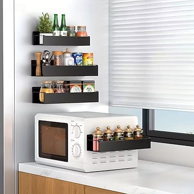 Lot de 2 organisateurs magnétiques pour réfrigérateur avec 4 crochets amovibles, étagère de rangement magnétique sans perçage, support de rangement latéral pour réfrigérateur, accessoires de cuisine