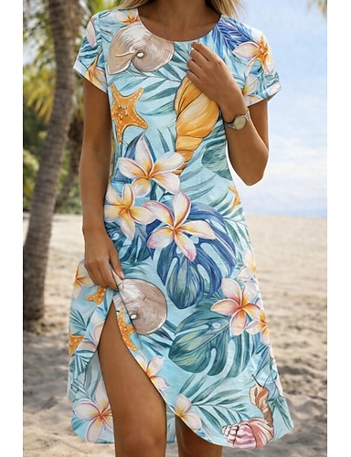 Femmes Mini Robe Robe d'Été Robe T-Shirt Robe trapèze Vacances Occasionnel Extérieur Plage Sortir Coupe Ample Fleuri Graphique Manche Courte Col Rond Feuille Blanc / Vert blanc bleu Été Printemps