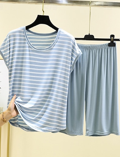 Femmes Pyjamas Loungewear Occasionnel Rayure Taille Élastique Shorts Quotidien Maison Lit Sans manches Col ras du cou Noir Vert Claire Rose Claire Gris Clair Bleu clair Été Automne Coupe Ample