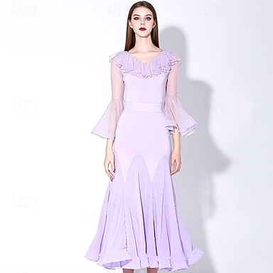 Danse de Salon Robe Plis Épissage Femmes Soirée Entraînement Performance manche longue Spandex Polyester