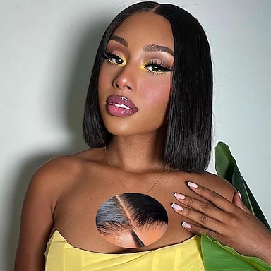 perruque brésilienne droite bob cheveux humains 14 pouces 13x4 hd perruques avant en dentelle 180 densité sans colle pré-épilée avec des cheveux de bébé 180% densité sans colle courte perruques de