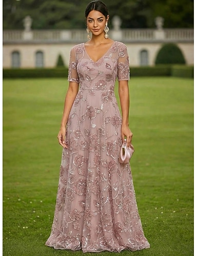 Ligne A Robe Longueur au sol Longueur cheville Robe de Cocktail Robe d'invité de mariage Robe de Mère de Mariée Manche Courte Col en V Élégant Occasionnel Formel robe demoiselle d honneur Semi-Formel