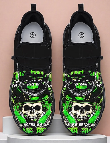 Baskets slip-on pour femmes, ornées d'un adorable imprimé de chien et de trèfle – chaussures confortables en toile verte, parfaites pour les défilés, les festivals et les sorties décontractées.