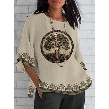 Femmes Chemise Imprimé Fleuri Quotidien Occasionnel Manche 3/4 Col ras du cou Hauts Réguliers Quotidien Fête Vert Kaki Été Printemps Automne