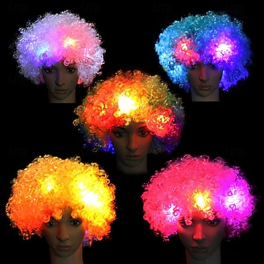 Perruque de supporter afro LED lumineux - Costume de fête de football 2026 pour USA Mexique et toutes les équipes