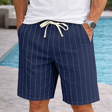 Homme Shorts Shorts en Lin Shorts d'été Shorts de plage Cordon de serrage Taille Élastique Rayé Confort Respirant Longueur Genou Quotidien Extérieur Fête Vacances Mode Noir Blanche Non Elastique