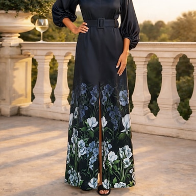 Ligne A Longueur au sol Robe Chemise Robe de Soirée Robe de Cocktail Robe de Mère de Mariée manche longue Col de chemise Élégant ancien Mariage Formel Nylon avec Noeud(s) Fente Poche