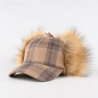 Homme Trappeur Chapeaux d'Hiver Vert Kaki Polyester Toison Mode Moderne Contemporain Tenue quotidienne Date Plaid Chaleur Thermique Coupe-vent