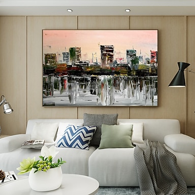 Manuel(le) Fait à la main Peinture à l'huile Hang-peint Peint à la main Panoramique horizontal Abstrait Architecture Moderne Réalisme Toile roulée (sans cadre)