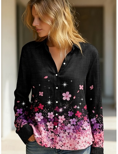 Femmes Chemises en coton et lin Faux coton lin Imprimé Fleuri Basique Occasionnel manche longue Col de chemise Hauts Réguliers Quotidien Rose Claire bleu marine Fuchsia Vert Été Automne