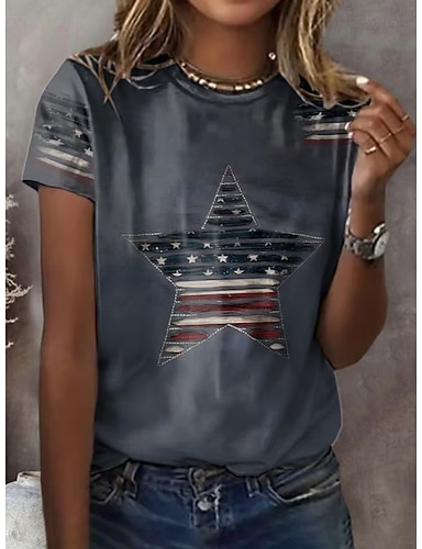 T-shirt patriote femme pour le Jour de l'Indépendance graphique du drapeau vintage style élégant classique manches courtes col rond tops réguliers impressions quotidiennes week-end gris foncé été