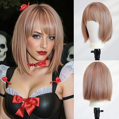 Perruque blonde droite de 10 pouces pour femme – frange complète, cheveux courts, parfaite pour Halloween, le cosplay et les looks mode