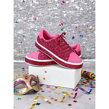 Baskets à lacets roses pailletées pour femmes de Mardi Gras - Chaussures décontractées à plateforme scintillantes pour le carnaval les festivals et les soirées