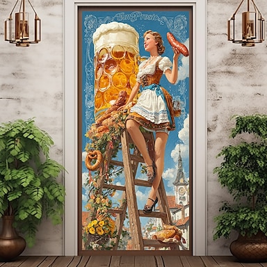 Décorations de porte pour l'Oktoberfest, couvre-portes de bière bavaroise allemande, tapisserie de porte, rideau de porte, décoration de toile de fond, bannière de porte intérieure/extérieure pour