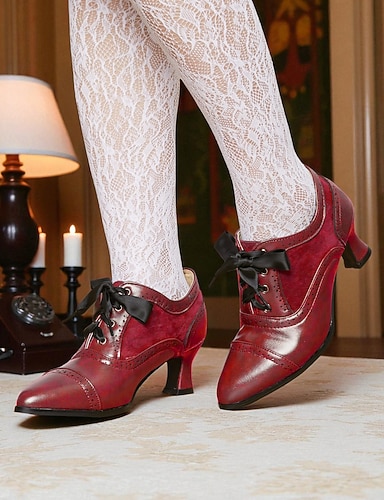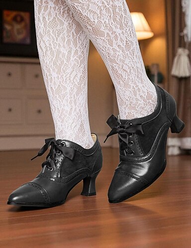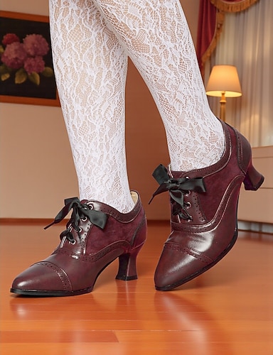 Chaussures Oxford à lacets et talon chaton de style édouardien des années 1920 pour femmes – Escarpins brogues vintage bicolores en velours et similicuir pour soirées Gatsby et tenues de soirée