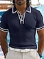 Homme Chemise de golf Polo Piqué Occasionnel Travail Revers Col Polo Côtelé Manche Courte Basique Moderne Couleur Unie Bloc de Couleur Patchwork Avec Poches Printemps & Été Été Coupe régulière Bleu