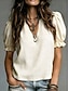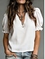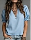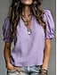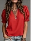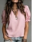 Femmes Chemisier Élégant Classique Occasionnel Manche Courte Manches bouffantes Col en V Hauts Réguliers Occasionnel Bleu Ciel Blanche Rose Claire Rouge Violet Claire Été Printemps