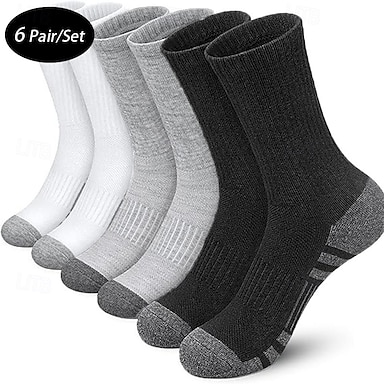 Homme 6 paires Paquets multiples Chaussettes Chaussettes de Course Chaussettes décontractées Noir + Blanc + Gris Noir Couleur Bloc de couleur Sport & Loisir du quotidien Vacances Basique Moyen