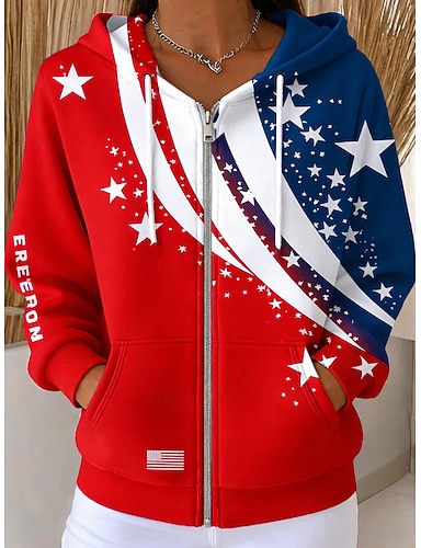 Femmes Sweats à capuche zippés Fermeture éclair Avec Poches Imprimé Graphique Mode Occasionnel manche longue À capuche Hauts Réguliers Rue Tenue Quotidienne Rouge Printemps Automne