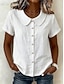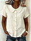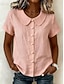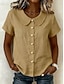 Femmes Chemisier Boutons Couleur Unie Quotidien Élégant Chic Manche Courte Col Rond Claudine Hauts Réguliers Occasionnel Quotidien Bleu Blanche Rose Claire Kaki Beige Été Printemps