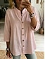 Femmes Chemise Chemises en coton et lin Chemisier Couleur Unie Basique Occasionnel Manche 3/4 Encolure en V Hauts Réguliers Quotidien Blanche Rose Claire Vert Été Printemps