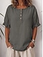 Femmes T-shirt en coton et lin T-shirt Couleur Unie Mode Ethnique Occasionnel Demi Manches Manches bouffantes Henley Hauts Réguliers Quotidien Sortir Kaki Gris foncé Été Printemps